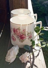 prohlédněte si tento velký, široký, lehce hraněný porcelánový tác, který zdobí romantické