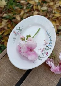 Barva: bílá, barevné květy, růžové ružičky a modré linky