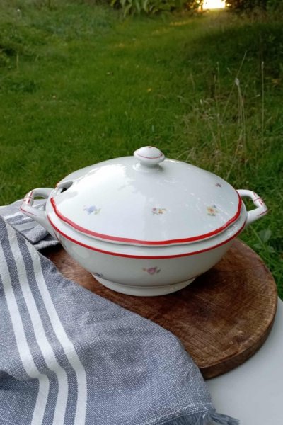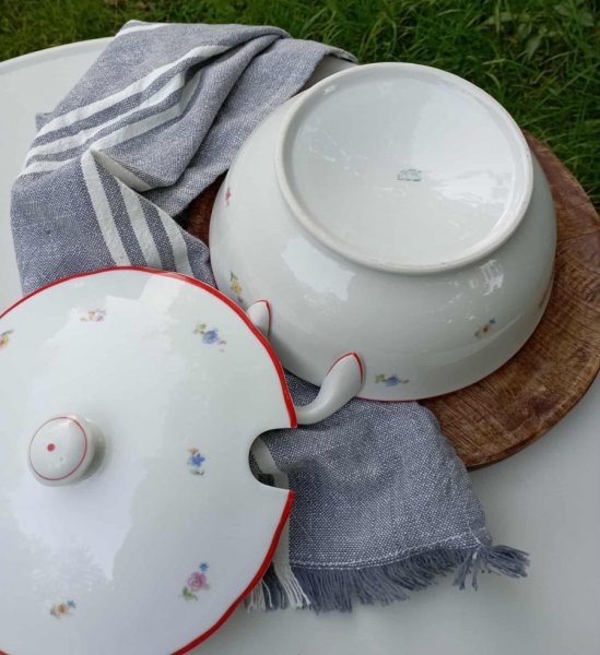 Polévková mísa - terina s kvítky - tato půvabná stará polévková mísa - terina je zdobena