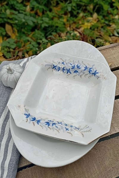 - krásné staré porcelánové servírovací nádobí: hranatá mísa, oválný a kulatý tác. Můžete