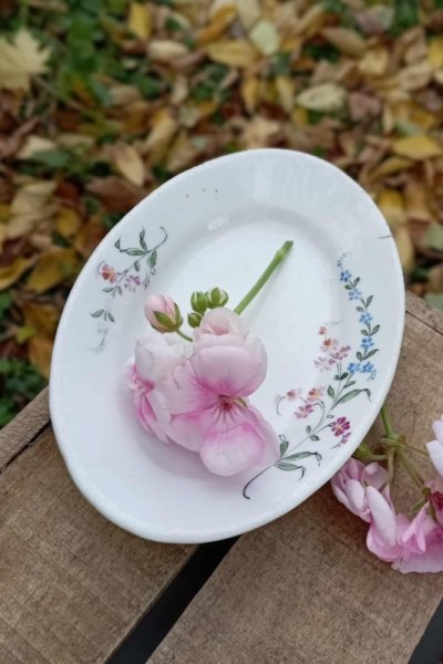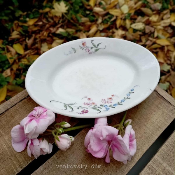 krásný bílý menší oválný tácek do sbírky, k servírování i dekoraci... Zdobí jej snítky