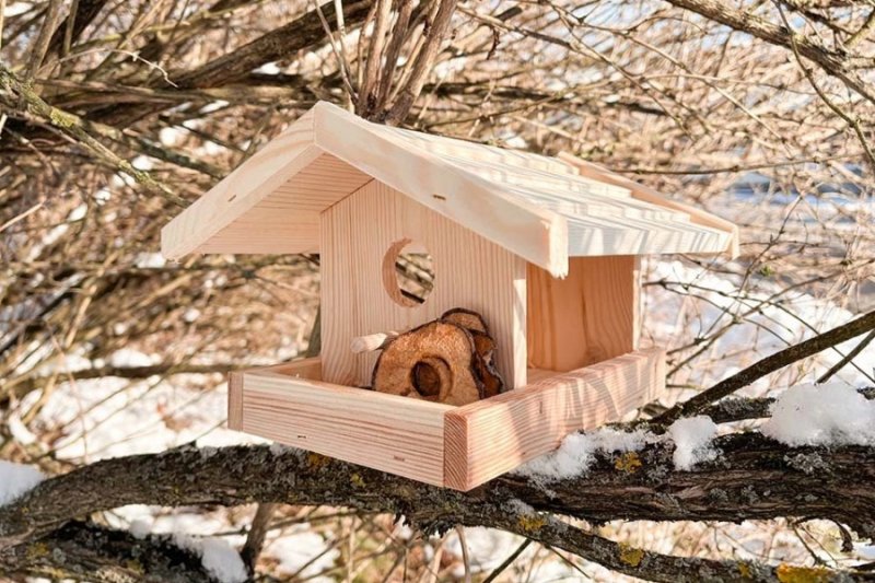 - jednoduché přírodní dřevěné krmítko se stříškou v tradičním provedení. Dopřejte ptáčkům