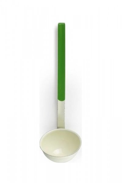 - krásná smetanově bílá naběračka na zavěšení do Vaší kuchyně se zelenou na rukojeti.
