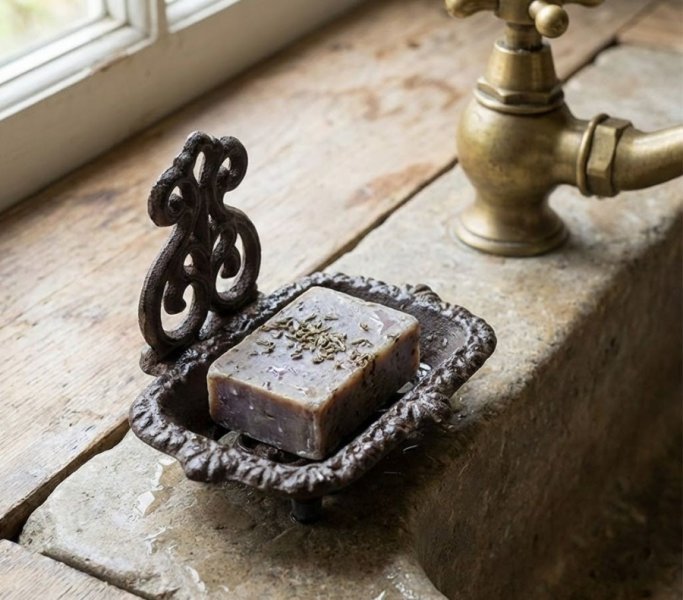- krásná litinová mydlenka na nožičkách, zdobená ornamentem.