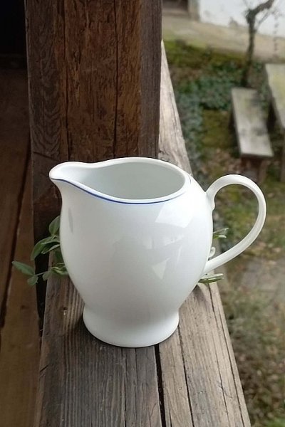 - mléčenka v bílé barvě s jemnou modrou linkou a pěkně tvarovaným tenším ouškem.